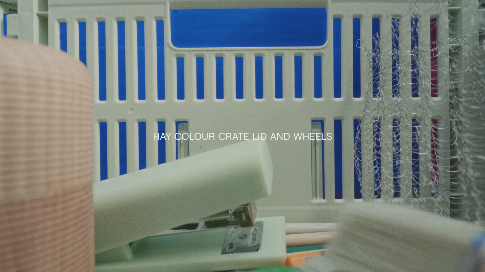 HAY has designed this useful lid that fits on top of the Medium Colour Crates, enabling multiple crates to be stacked on top of each other while concealing the contents.
